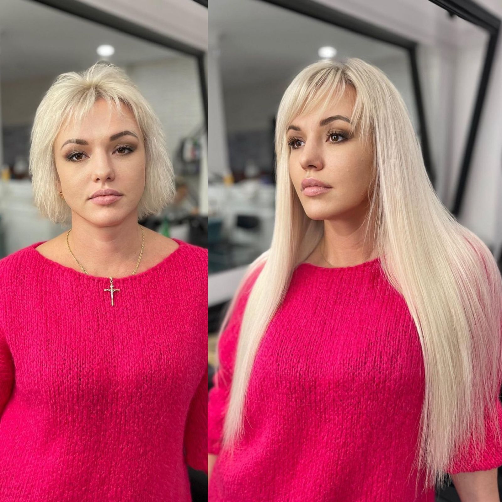 Авторская техника позволяет создать плавное продолжение ваших волос без переходов в оттенке и структуре. Мы воссоздаём первозданный вид ваших волос по фото — и иногда даже лучше, чем было раньше.